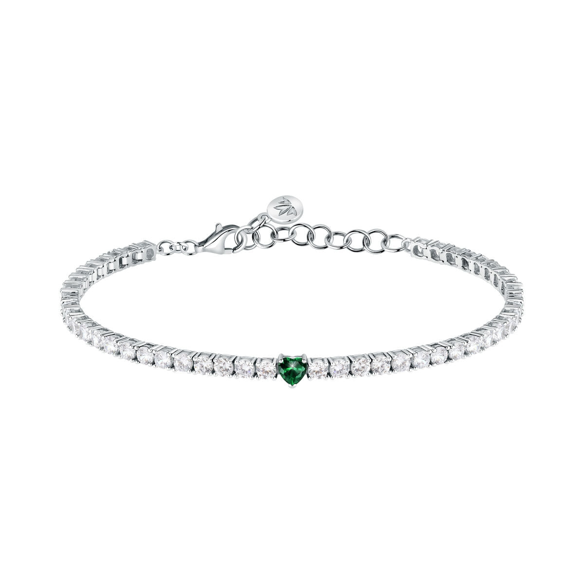 TESORI BRACELET 925 SILVER WHITE CZ WITH EMERALD HEART CENTRE CZ 19CM