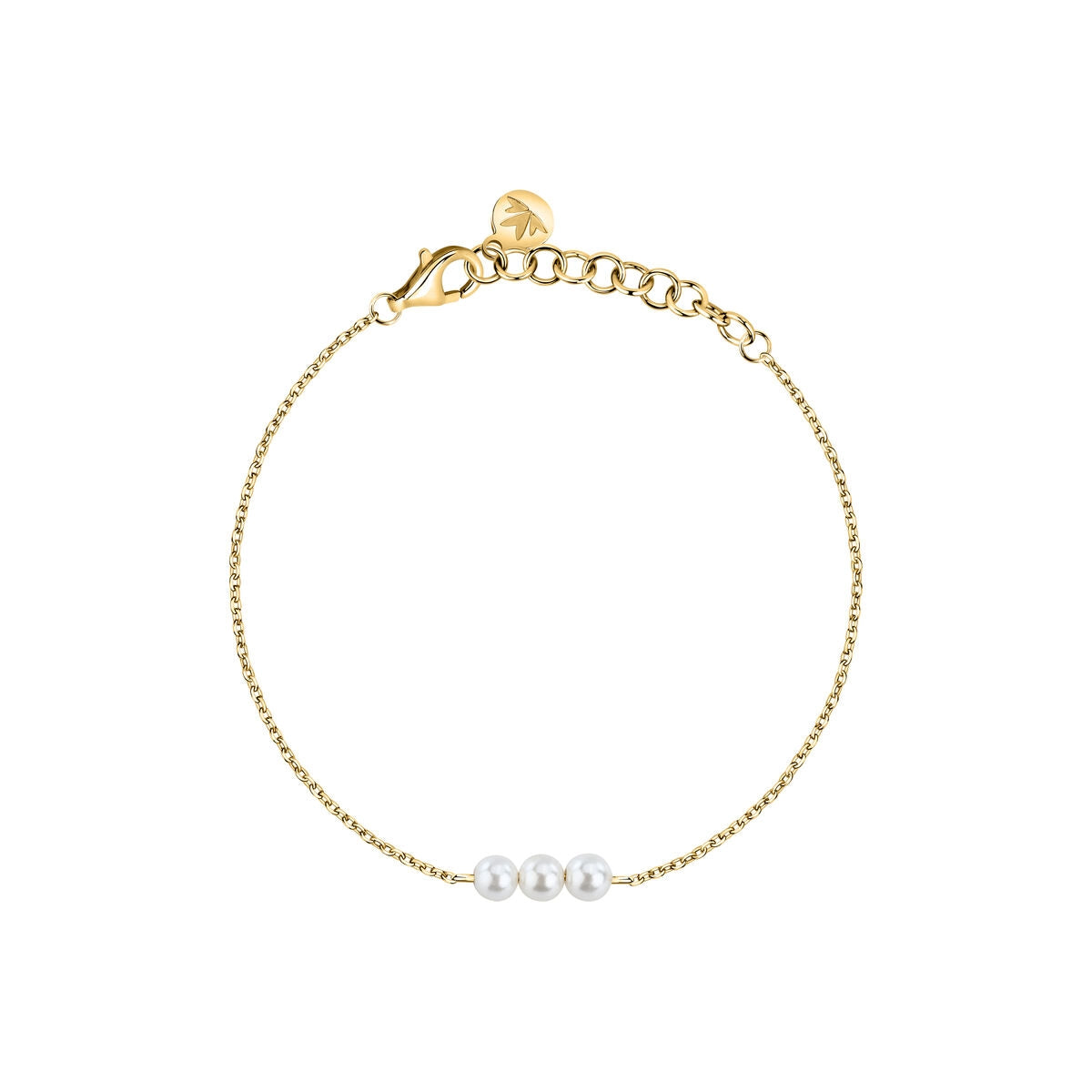 perla bracelet 925 silver 3 pearl on 18k yellow gold plated chain 19cm