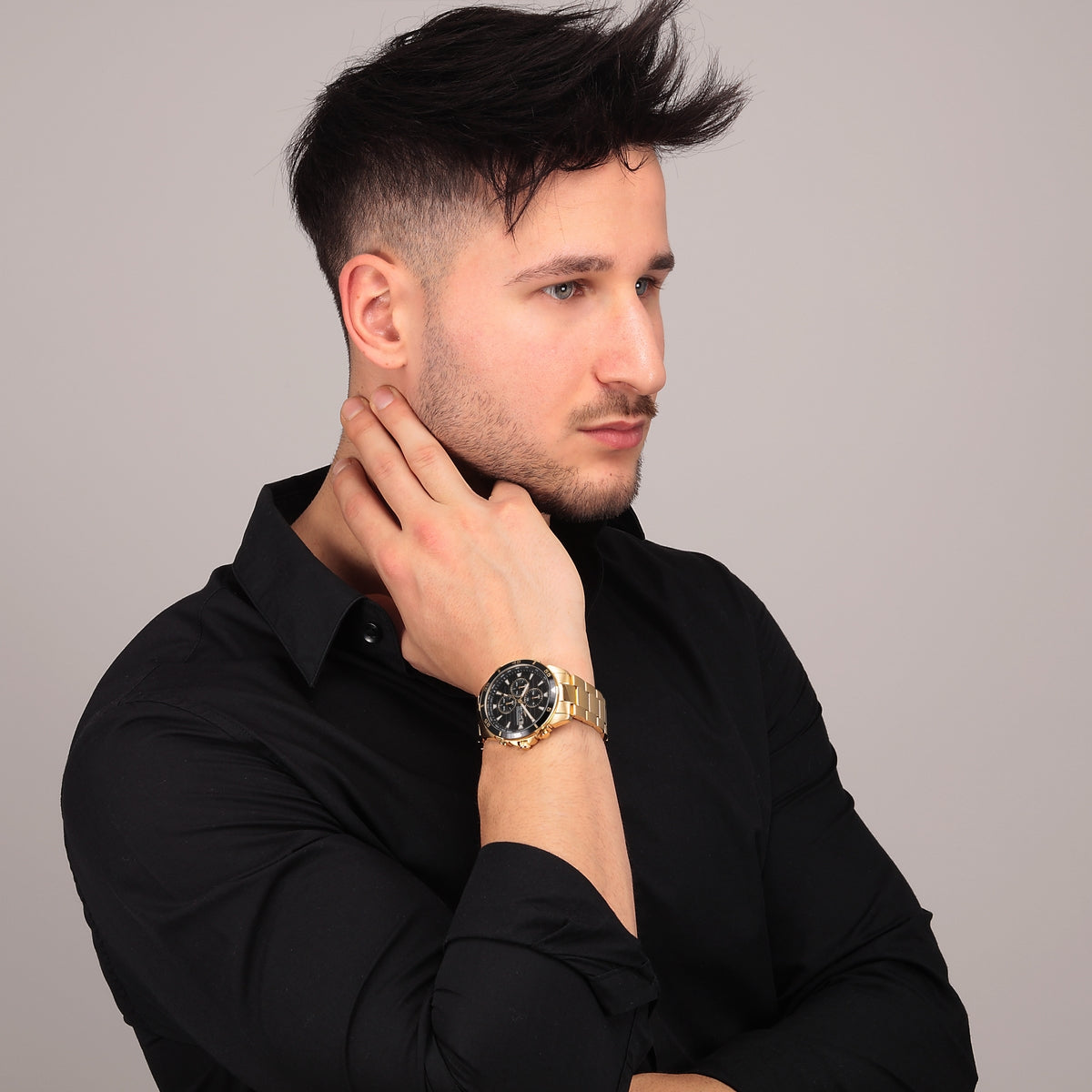 MOVEMENT TYPE: Quartz MOVEMENT CALIBRE: BAND TYPE: Stainless Steel Bracelet CLASP TYPE: DIAL COLOUR: Black WATER RESISTANCE (Metres): 100 CASE WIDTH: 43mm CASE DEPTH: 11.5mm GLASS TYPE: Mineral Crystal DATE FUNCTION: STONE TYPE: