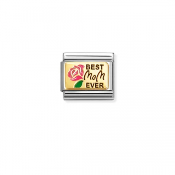 Original Nomination Composable Classic Link for Composable bracelet in stainless steel with bonded yellow gold plate with Black, Pink and Green enamel and BEST MOM EVER text. For Mom, for that special lady who is always by your side, ready to help you and support you. Surprise her with a gift that is special like her, something she can wear every day to remind her just how much she means to you!