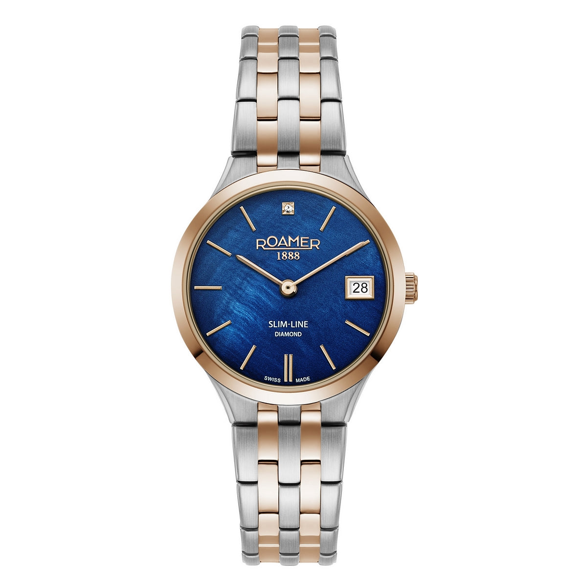 Roamer SlimLine Diamond Ladies 2 hand date Quartz WristWatch Analog Battery Watch