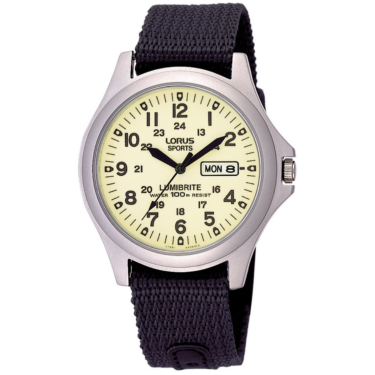 LORUS QUARTZ GENTS STAINLESS STEEL LUMIBRITE DIAL GREY STRAP WATCH