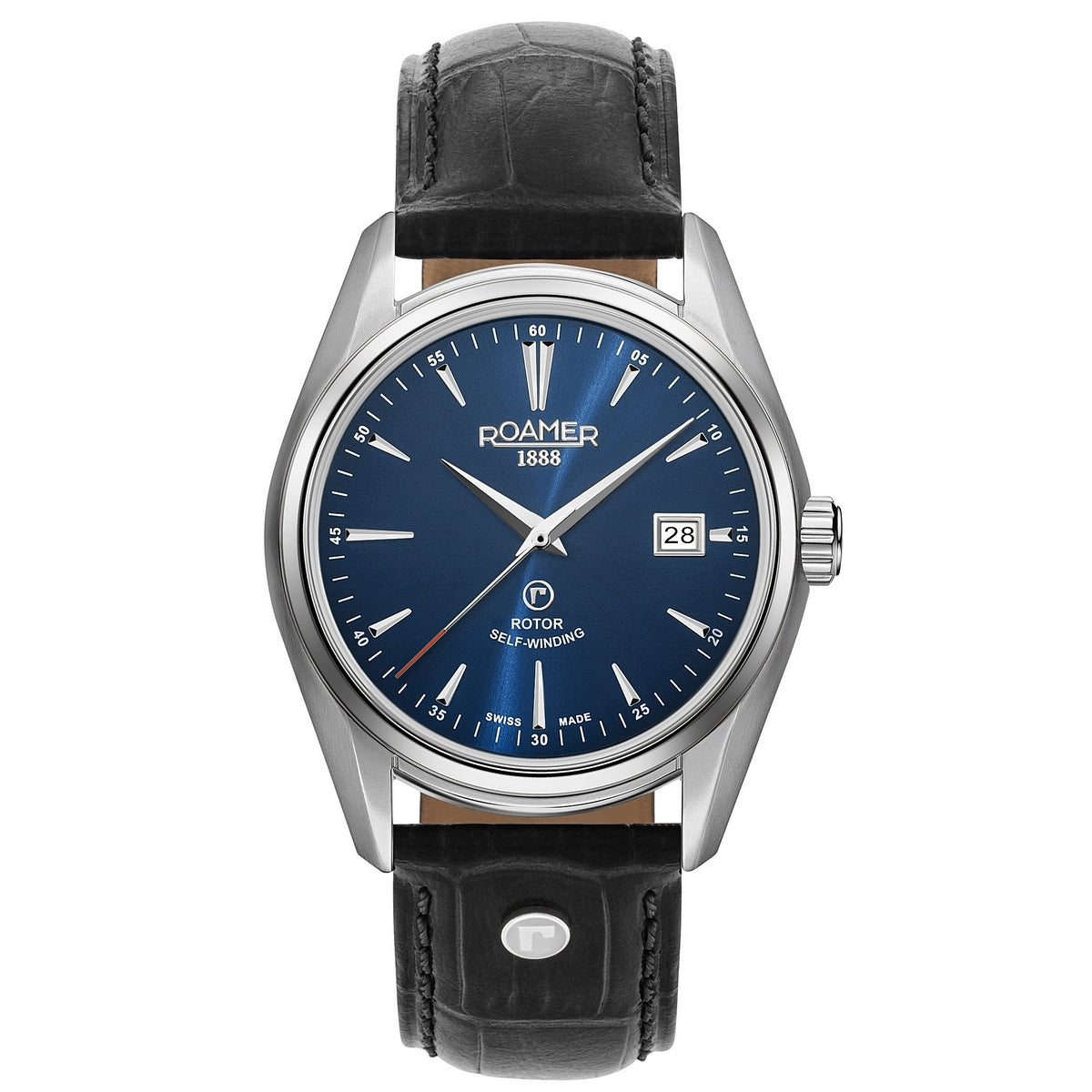 roamer searock classic automatic gents stainless steel blue dial strap watch