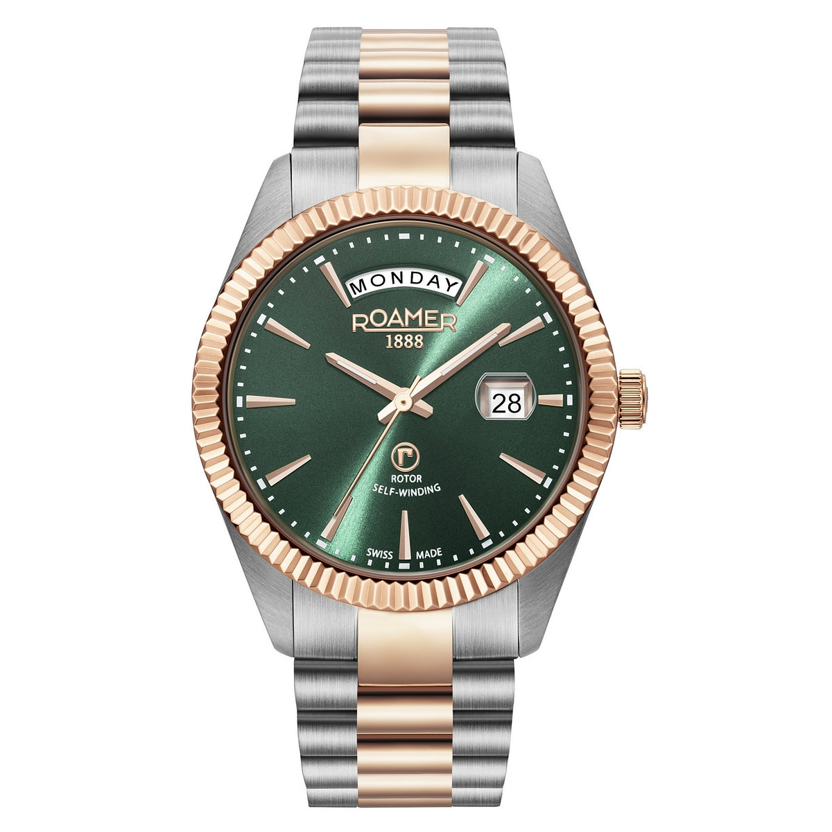 Roamer Primeline Daydate Swiss Made Automatic STP4-13 3 Hands - day & date SS IPRosegold Two Tone Mechanical Wrist-Watch - Analog - self winding