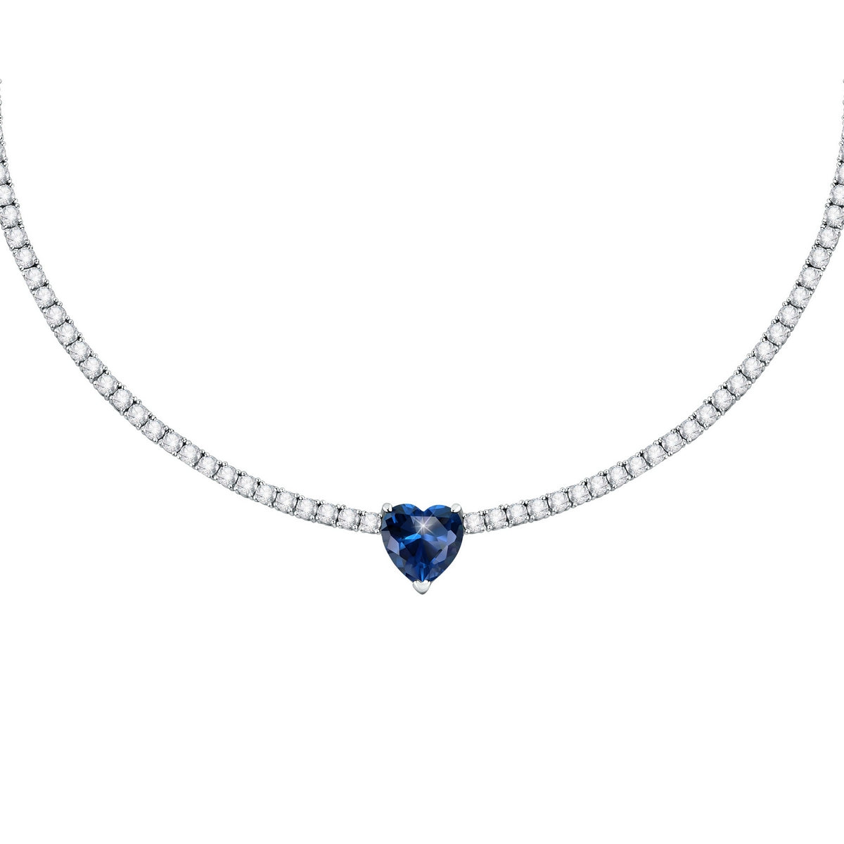 Chiara Ferragni Diamond Heart Necklace 37Cm + 5Cm Tennis With Big Blue Heart Stone