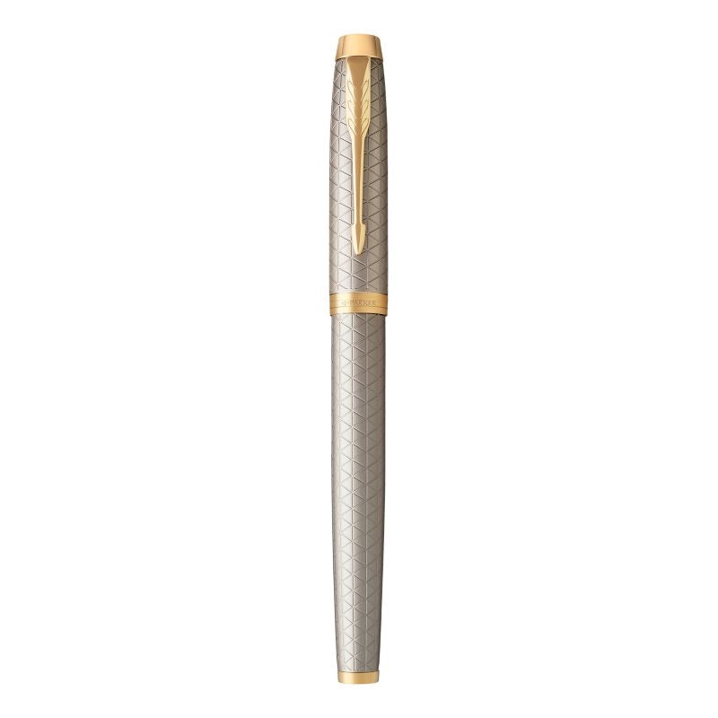 PARKER IM PREMIUM WARM GREY GOLD TRIM ROLLERBALL FINE POINT BLACK PEN
