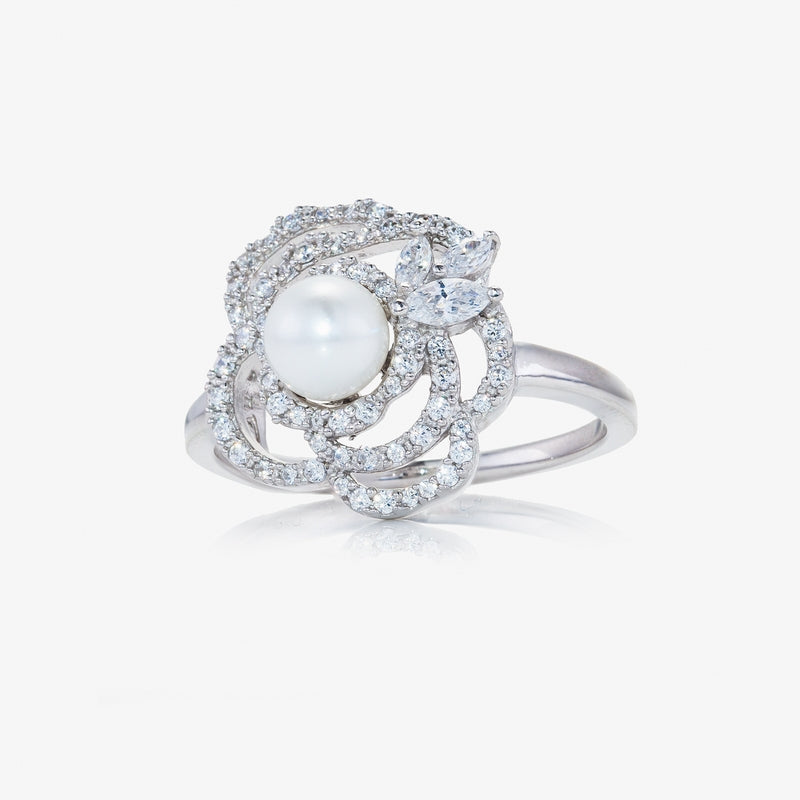 Ring Stoneset outline of a flower with a pearl in the centre size L
