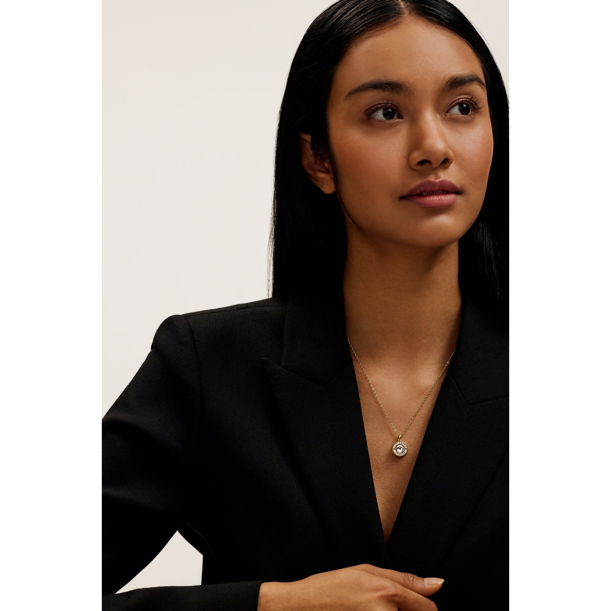 ted baker cherlie: crystal button pendant necklace gold tone, pink, clear crystal