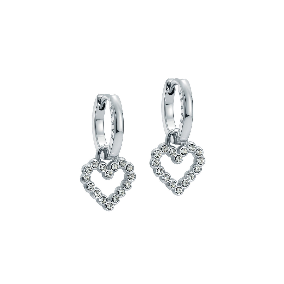 TED BAKER AMORA: Crystal Halo Heart Huggie Earrings Silver Tone, Clear Crystal