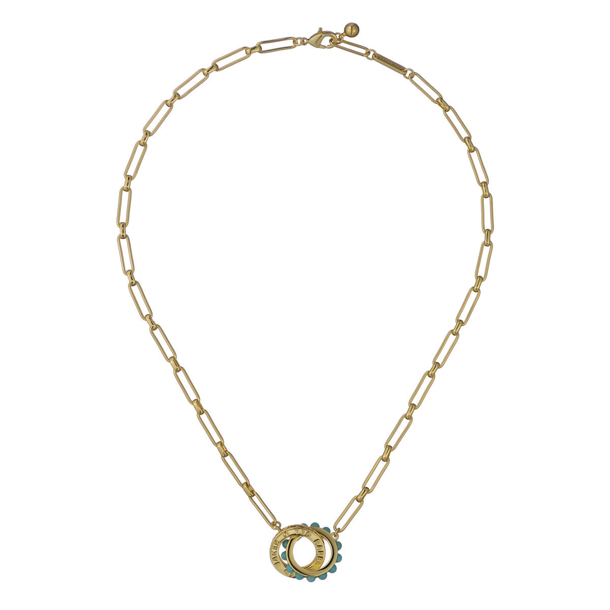 TED BAKER LOLA: Double Logo Link Necklace Gold Tone Blue Pearl