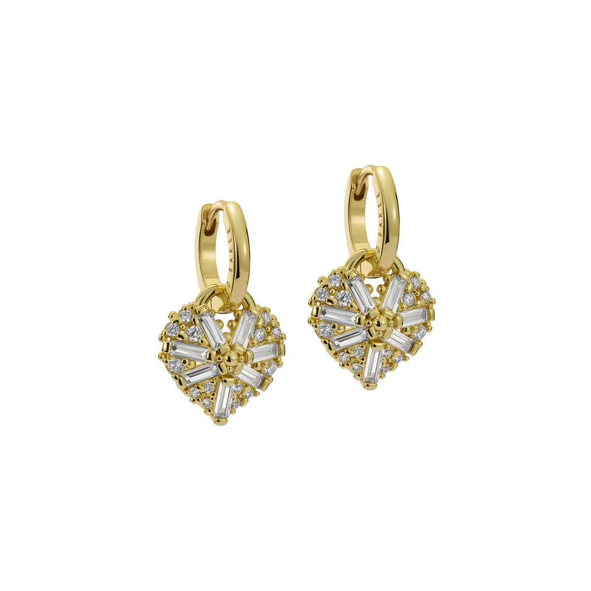 TED BAKER CHERISE: Crystal Cluster Heart Huggie Drop Earrings Gold Tone