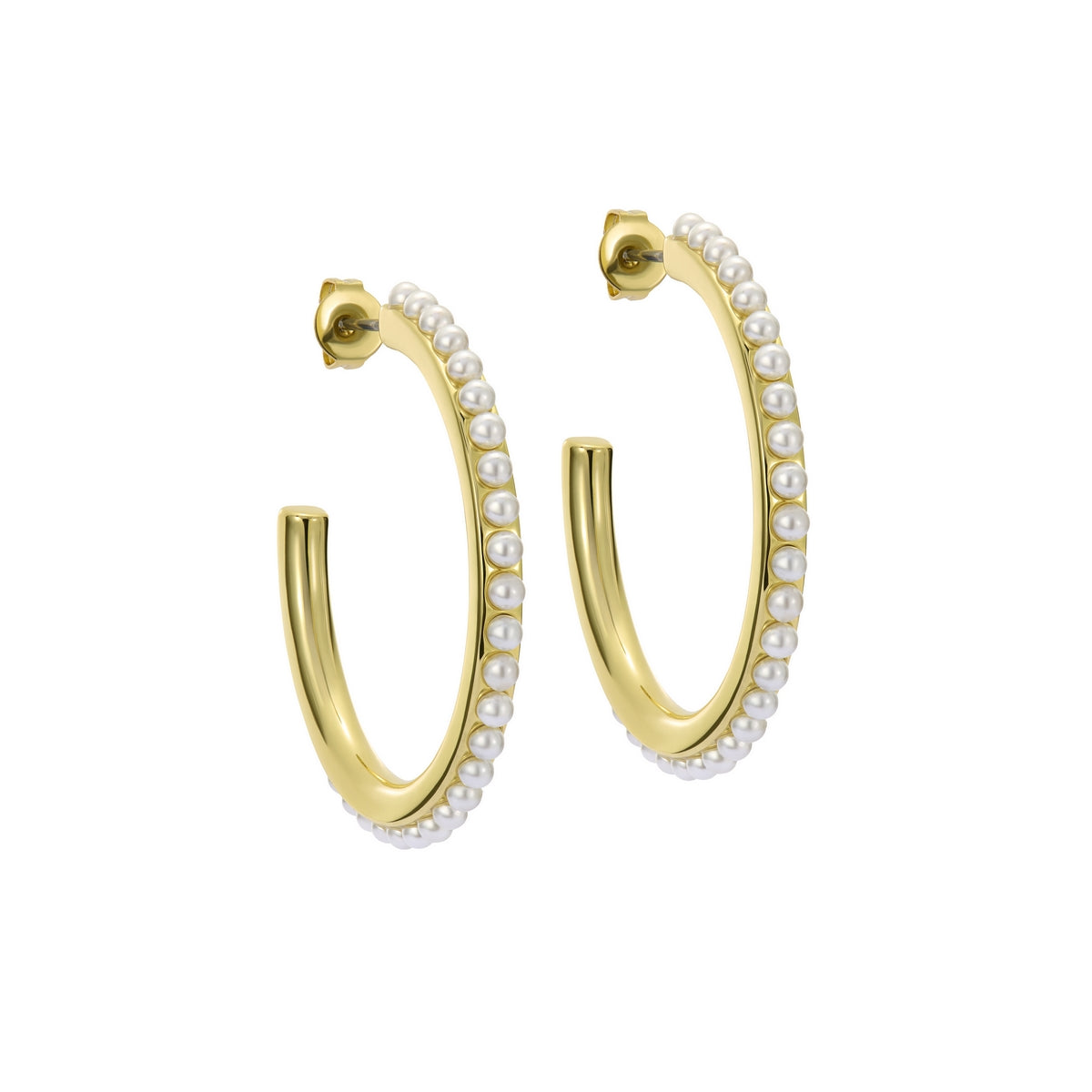 TED BAKER PERAA: Medium Pearl Hoop Earrings Gold Tone