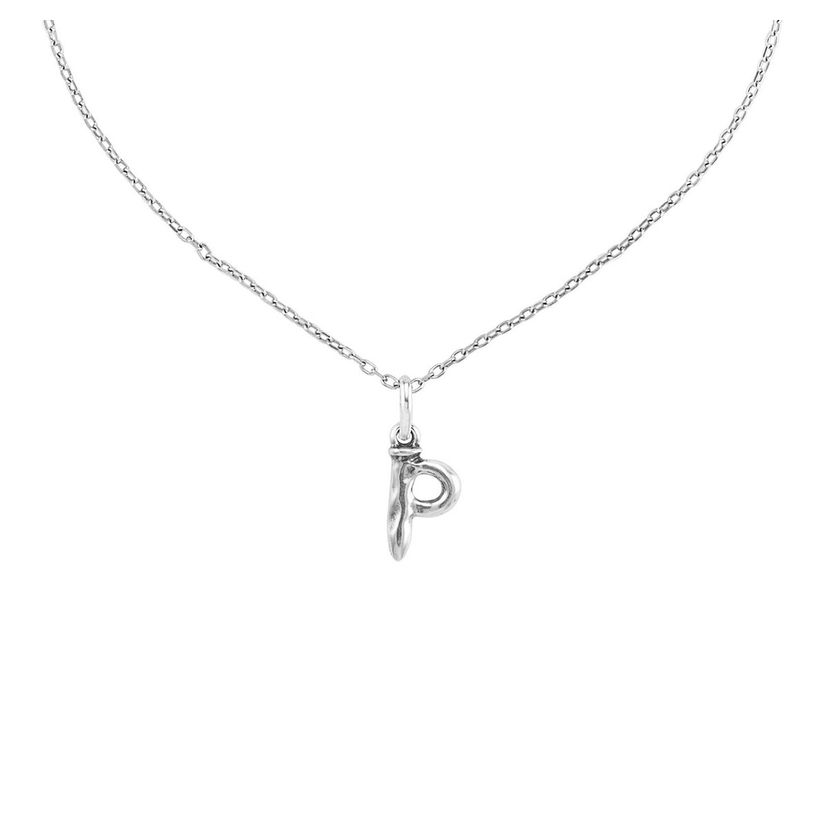 uno de 50 p�s 2.5mm little letter p metal charm clad with silver. charm only