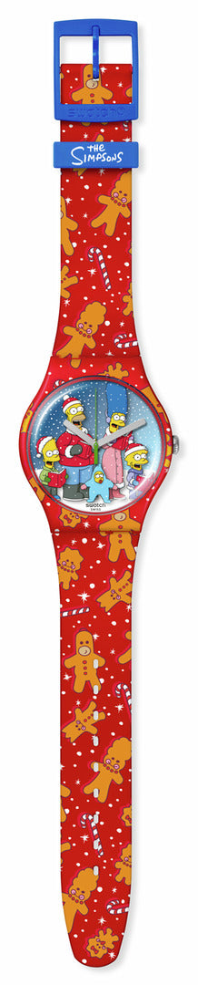Regular price €105,00 Sale price €75,00 Save €30,00Part of the Simpsons collaboration collection, this festive red Simpsons Holiday Special has a multi-color printed dial featuring all the members of The Simpsons family. The red printed strap includes a contrasting blue loop and buckle. TM & © 20th Television. Matt Groening